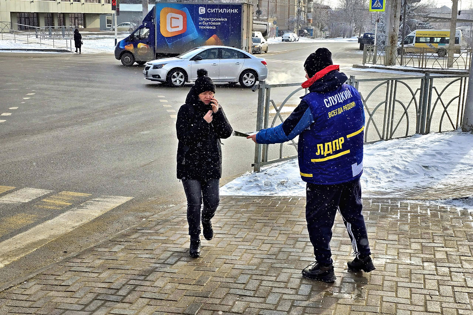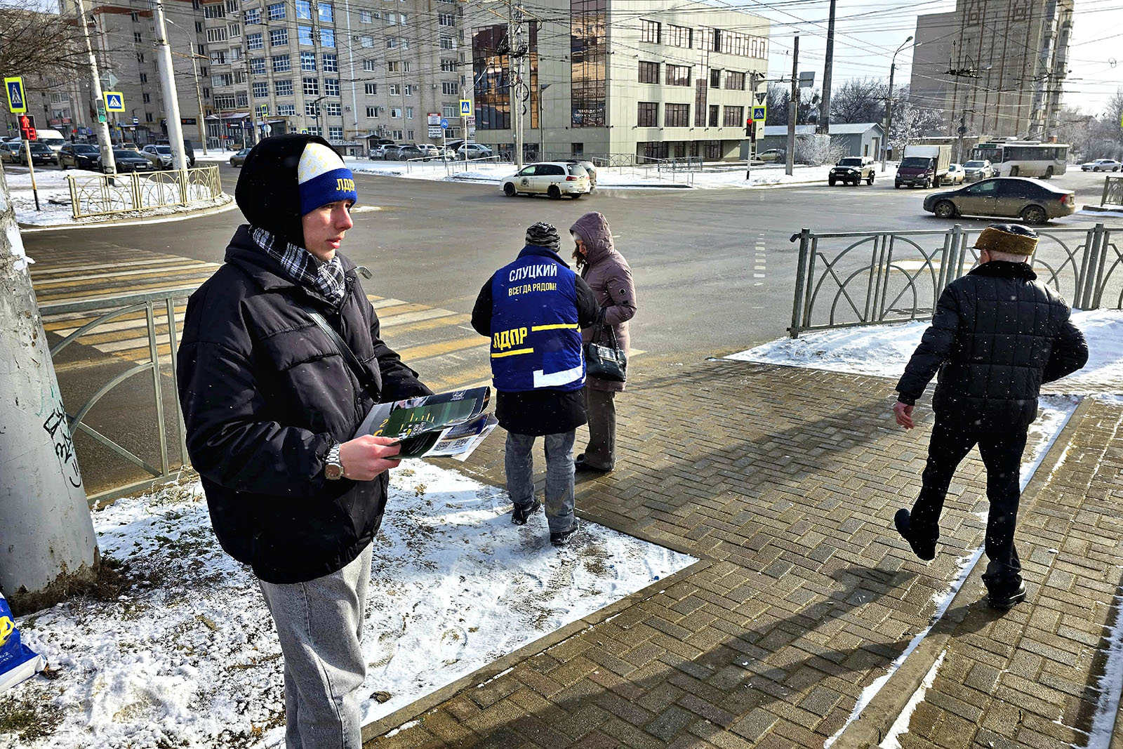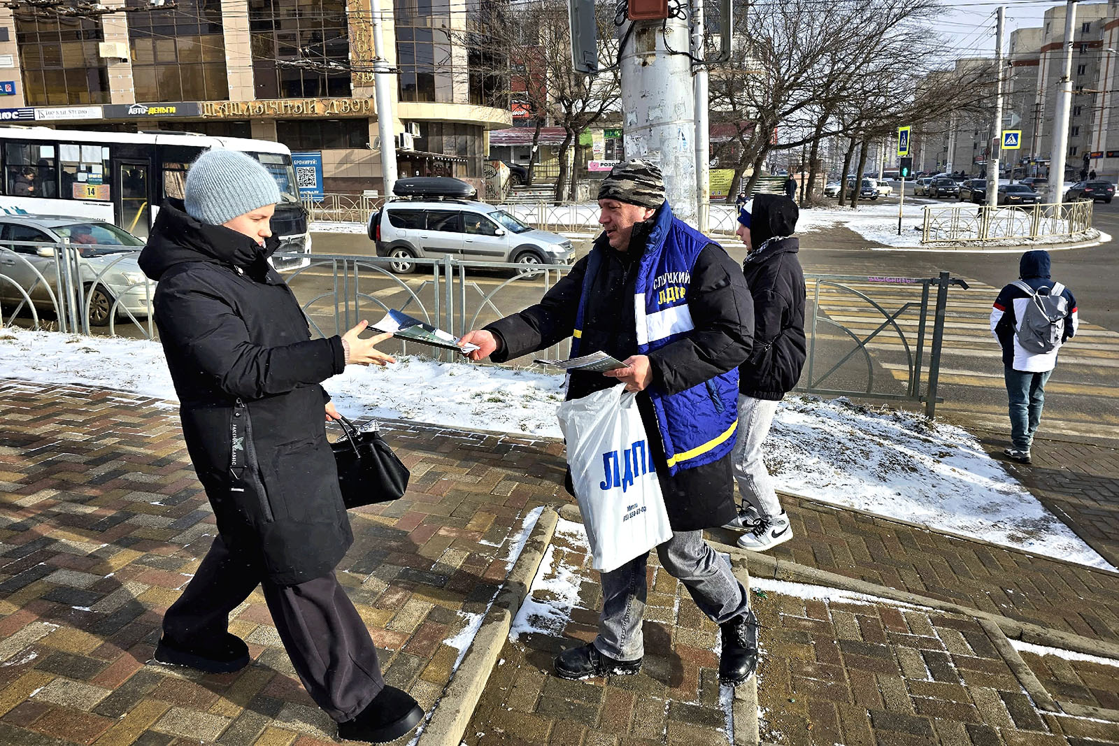 Под руководством координатора городского отделения Василия Самохина партийцы вышли на улицы, чтобы распространить свежий выпуск газеты «ЛДПР». Несколько сотен экземпляров разошлись у рынков, магазинов, на перекрёстках и остановках общественного транспорта — в тех точках города, где жизнь не прерывается даже в мороз и где разговор по-прежнему начинается с простого человеческого контакта.