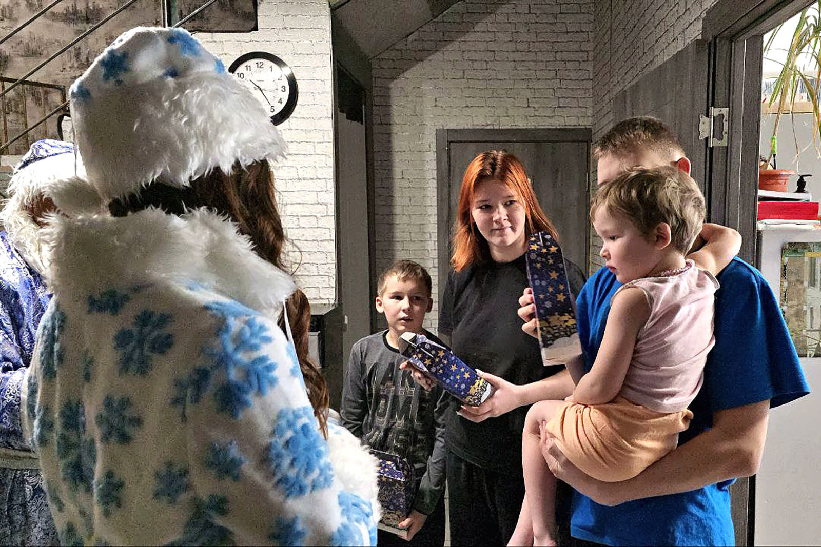 В этот раз Василий Самохин появился в образе Деда Мороза — не как сценический персонаж, а как понятный детям знак внимания и заботы. Рядом была Снегурочка, подарки и та самая спокойная, человеческая интонация, которая запоминается сильнее любых слов.